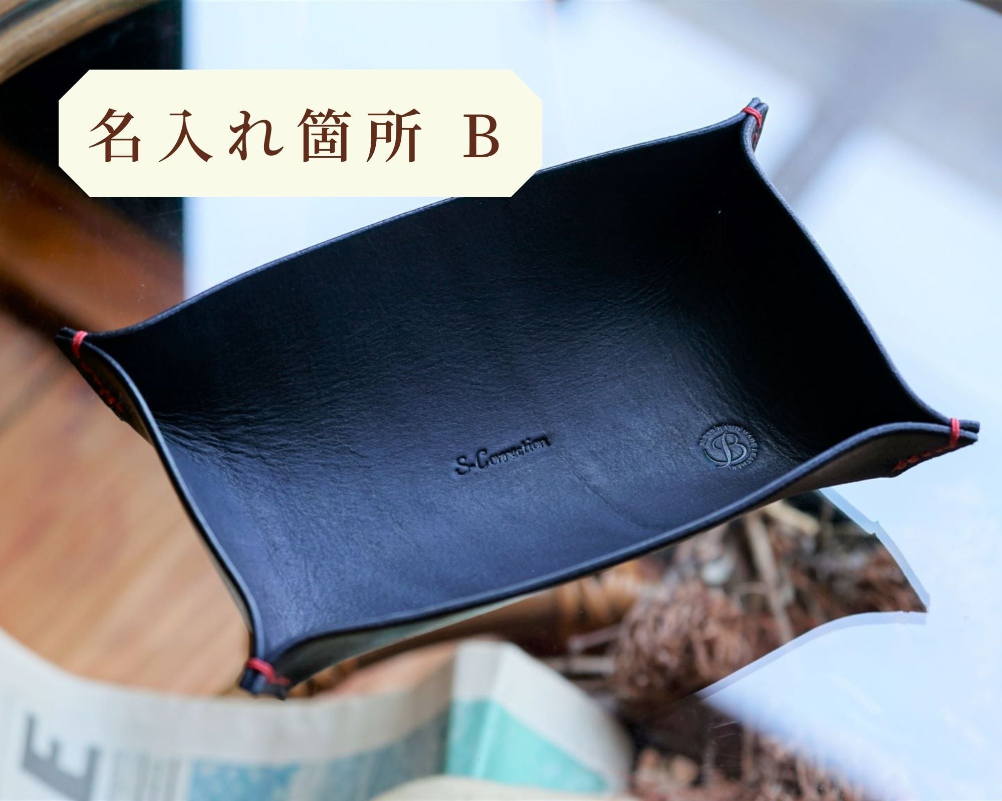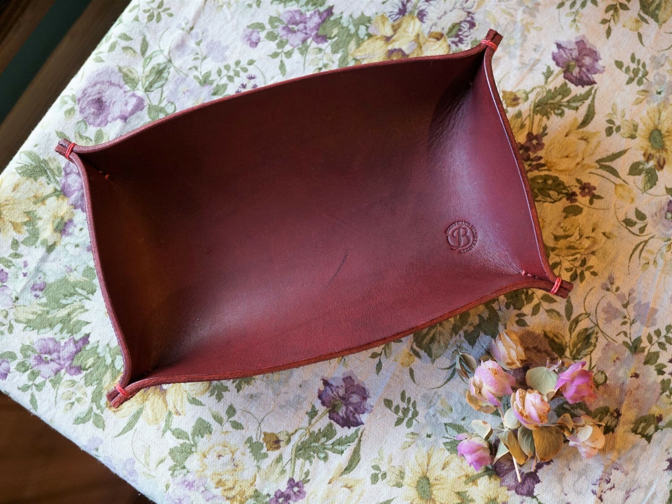 四隅のステッチがアクセントのシンプルなレザートレイ。