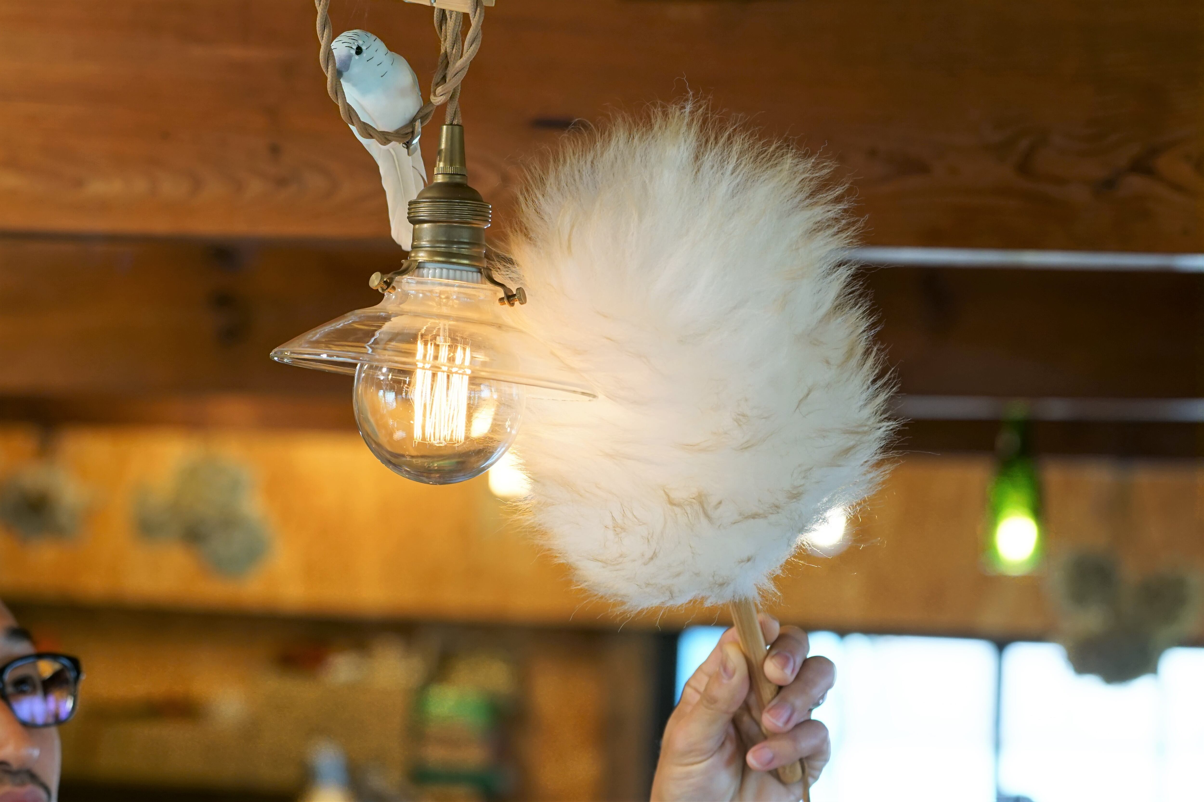 ふわふわもこもこ、羊毛100%のホコリ取りです。